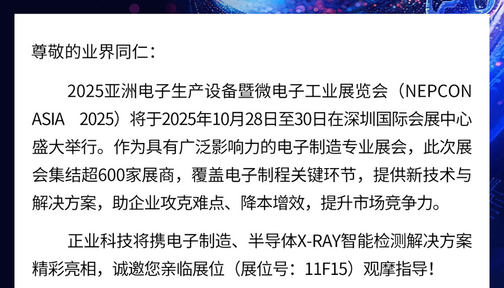 邀請函 | 正業(yè)科技誠邀您相聚2025亞洲電子生產(chǎn)設(shè)備暨微電子工業(yè)展覽會